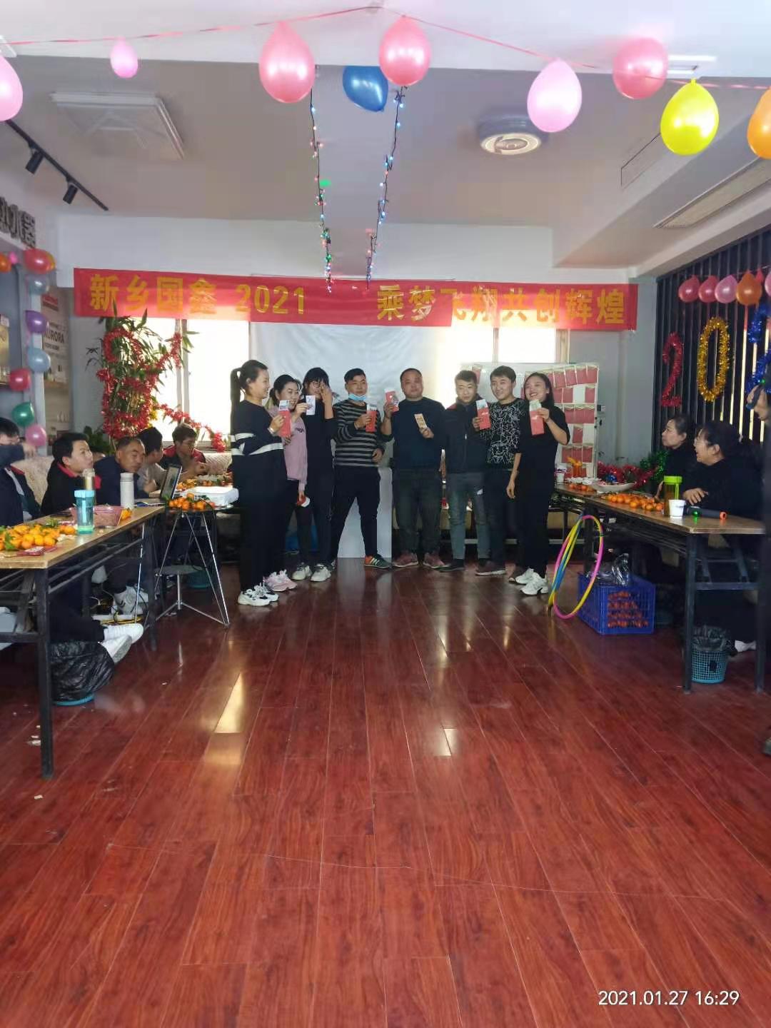 2021年1月27日新乡国鑫全体员工参加了公司举办的2021年年会,会场上大家欢乐融融,积极参与,在场的同事们更是感受到了浓浓的节日气氛。本次年会,融合了舞蹈、相声、朗诵、口琴独奏等各方面元素,节目精彩纷呈,游戏丰富有趣,红包抽不停,给公司员工带来了一场别开生面的视觉盛宴。整个年会会场气氛活跃,让员工在参加年会的同时,又收获了一份感动,一份与企业心心相连的默契。